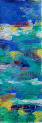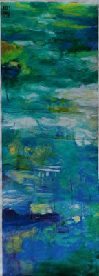 Peinture à l’huile et à l’acrylique sur toile : 410 x 200 cm environ. « Le lac du Lotus »