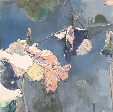 Juillet 2023 : GALA a livré en Suède la commande de 3 tableaux de la série “Le lac aux lotus” 60 x 80. Huile sur toile